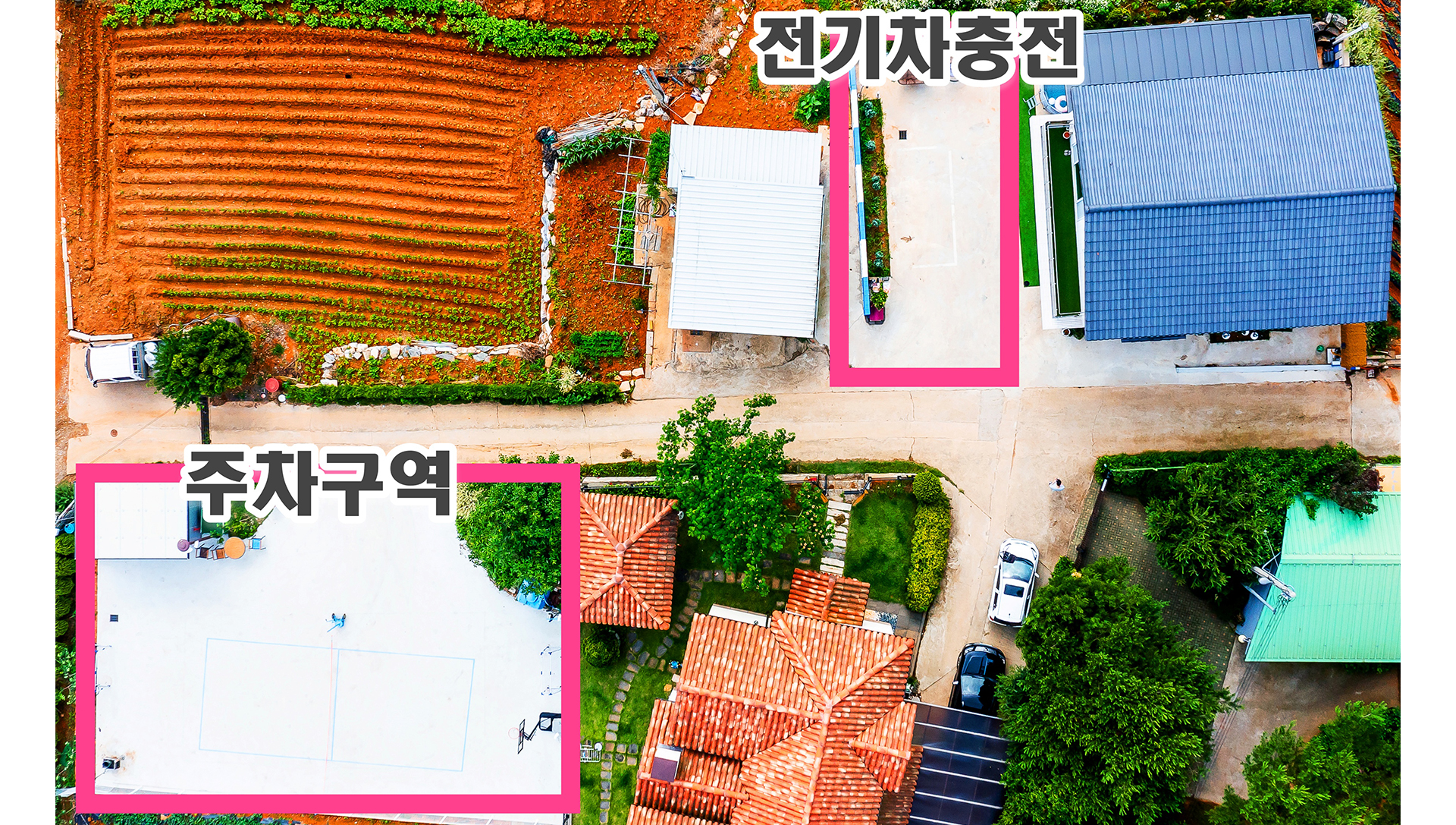 펜션내 주차장과 전기차충전소가 마련되어 있습니다.